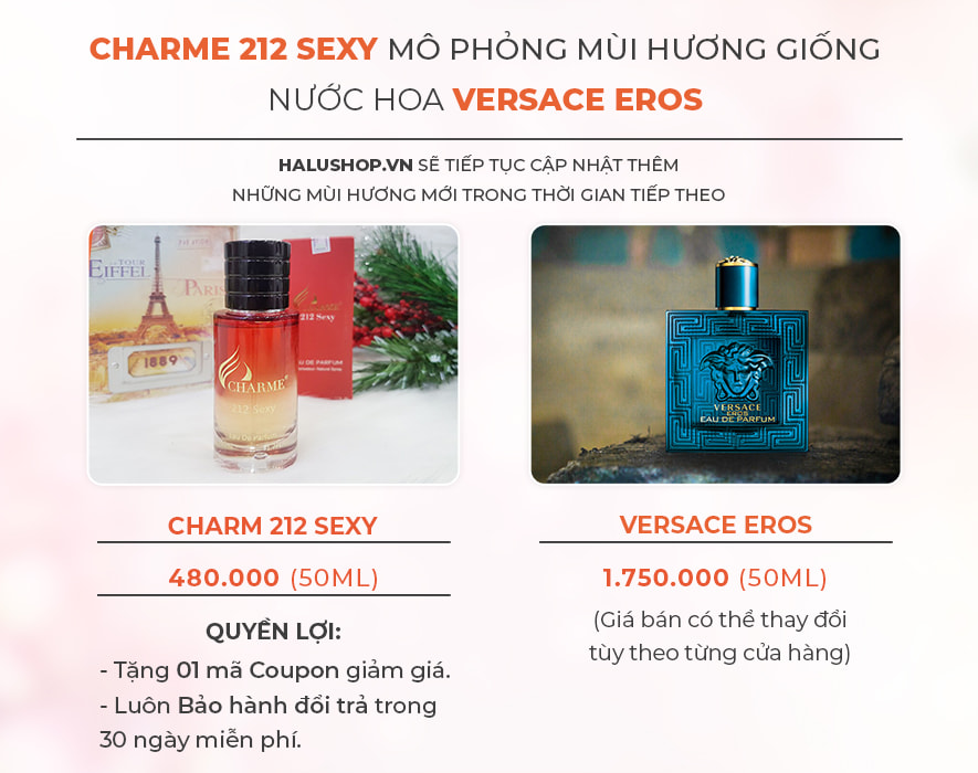 Được coi như bản dupe của Eros For Men, đứa con tinh thần nhà Charme mang tên 212 Sexy đem lại cho người dùng những trải nghiệm rất thật: gợi cảm, quyến rũ nhưng vô cùng mạnh mẽ.